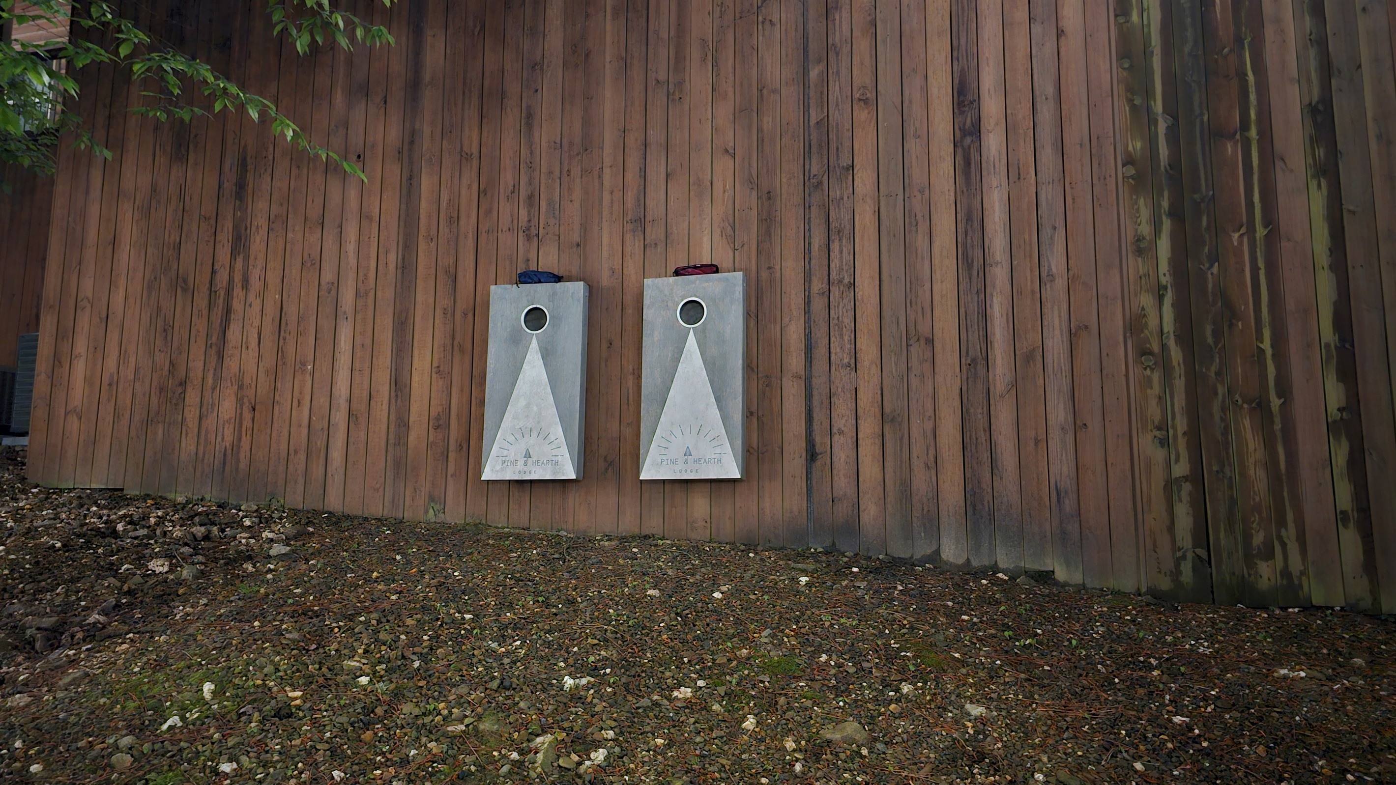 Step outside and breathe in the fresh mountain air — Pine & Hearth Lodge is surrounded by towering pines and offers plenty of outdoor space to relax and play.